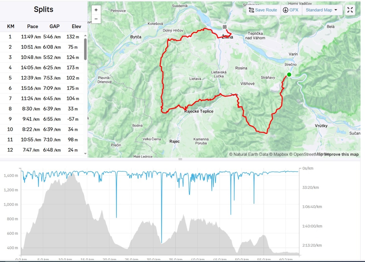 Po ceste pozerám na GPS v hodinkách, že tu máme niekde križovať diaľnicu, no široko-ďaleko nevidím cestu. O chvíľu pozerám, že som už za diaľnicou. Hmm... až doma zisťujem, že to bol diaľničný tunel. Ovčiarsko je tu cobydup a tak naberám posledné fľaše a hor sa na posledných 10 km do Žiliny. Po troch kilometroch už počujem autá, po ďalšom už som medzi prvými domami. Uf, to sa pôjde 6 kilometrov po meste? No dobre, toto je môj čas, na toto ja predsa doma trénujem, hahaha. Čistý asfalt, rovina, mestské lampy, zaraz predbieham pretekárov akoby som len vyštartoval. Samozrejme už tu o nič nejde, či budem 40. alebo 30. je úplne jedno, chcem byť len čo najskôr v cieli.